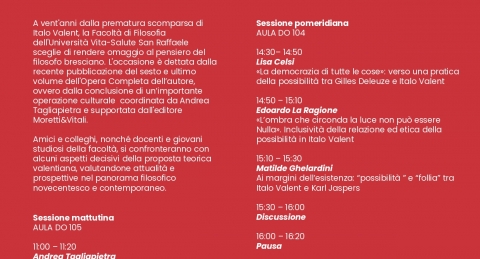 "Italo Valent nella filosofia del Novecento. Attualità e prospettive del metodo dialettico relazionale": giornata di studi organizzata dal Centro di Ricerca Interdisciplinare di Storia delle Idee- CRISI. L'evento si terrà mercoledì 29 novembre al Palazzo Donatello (Aule DO105 e DO104) dalle 11.