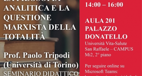 Mercoledì 10 maggio alle ore 14.00 si terrà il seminario"La filosofia analitica e la questione marxista della totalità" del prof. Paolo Tripodi dell'Università di Torino.