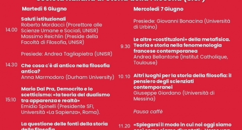 Dalla teoria alla storia: attualità e metodi della storia della filosofia- 6/7 giugno 2023, Palazzo Arese Borromeo, Aula 8, VIa Borromeo 41, Cesano Maderno. Convegno internazionale organizzato dalla Società Italiana di Storia della Filosofia (SISF). Comitato organizzativo e cura scientifica: Andrea Tagliapietra, Giovanni Bonacina, Valentina Sperotto, Erminio Maglione.