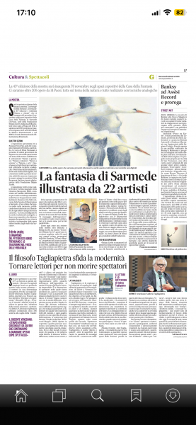 Su Il Gazzettino, sezione Cultura& Spettacoli, a pagina 17 dell'edizione di mercoledì 8 ottobre 2025, Adriano Favaro firma l'intervista ad Andrea Tagliapietra("Il filosofo Tagliapietra sfida la modernità- Tornare lettori per non morire spettatori"), dedicata al libro, pubblicato da Donzelli nel 2024, Il lettore e lo spettatore. Filosofia di due metafore dell'esistenza.